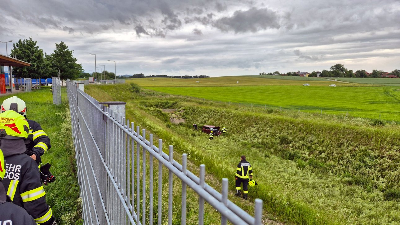 Nach kurzer RĂŒcksprache mit der bereits anwesenden Autobahnpolizei konnte die Situation jedoch rasch geklĂ€rt werden. Ein Fahrzeuglenker war offenbar beim Einparken von der Fahrbahn abgekommen, fuhr ĂŒber eine angrenzende WiesenflĂ€che, rammte dabei eine Sitzgelegenheit, durchbrach einen Zaun und rutschte schlieĂlich rund 50 Meter eine steile Böschung hinab, wo das Fahrzeug auf einer ebenen FlĂ€che zum Stillstand kam.