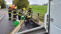 Aufgrund eines heftigen Bremsmanövers verlor der Fahrer eines LKW die Kontrolle über sein Fahrzeug und kam rechts von der Fahrbahn ab, wo er schließlich gegen ein Brückengeländer prallte. Durch den heftigen Aufprall bohrten sich Teile des Geländers in die Front des Fahrzeuges.