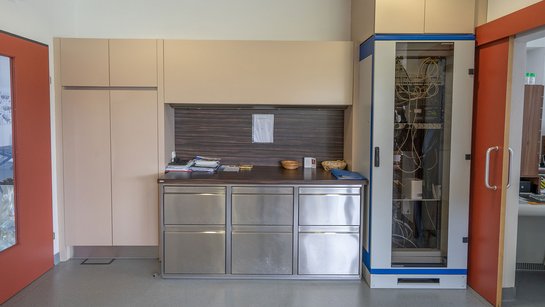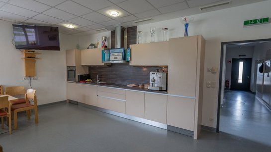 Im Aufenthaltsraum wird die Kameradschaft, welche in unserer Feuerwehr einen sehr hohen Stellenwert hat, gelebt. Hierfür stehen eine großräumige Küche, Sitzmöglichkeiten, ein Getränkekühlschrank sowie ein Fernseher bereit. Außerdem sind hier die wichtigsten Trophäen und Pokale der verschiedensten Wettbewerbe ausgestellt.